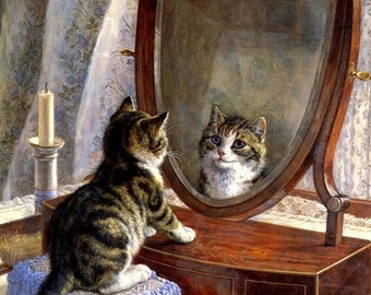 Use them in commercial designs under lifetime, perpetual & worldwide rights. Check out our cat looking mirror selection for the very best in unique or custom, handmade pieces from our shops. The first time a cat catches a glimpse of themselves in the mirror, they usually go absolutely bonkers! A cat seen in a mirror looks exactly like a cat seen directly. I see a cat freaking out , when i had cats they all freaked out when they saw themselves in the mirror.